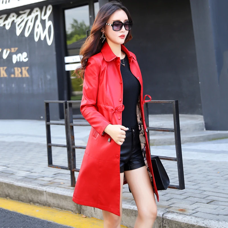 Big Discount M-5XL Large Size Autumn Women Red Leather Coat 2018 Fashion High Quality Lapel Leather Clothing Fem